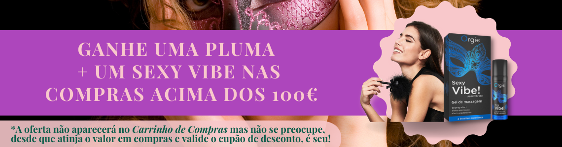 Nas compras acima dos 100€ você ganha a PLUMA + o SEXY VIBE com o cupão: CARNAVAL
