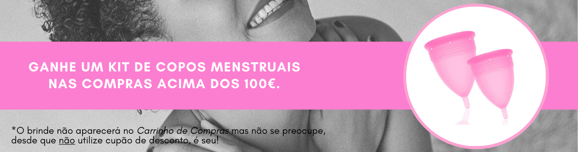 Nas compras acima dos 100€ -sem a utilização de cupão de desconto- você ganha um Kit de Copos Menstruais!