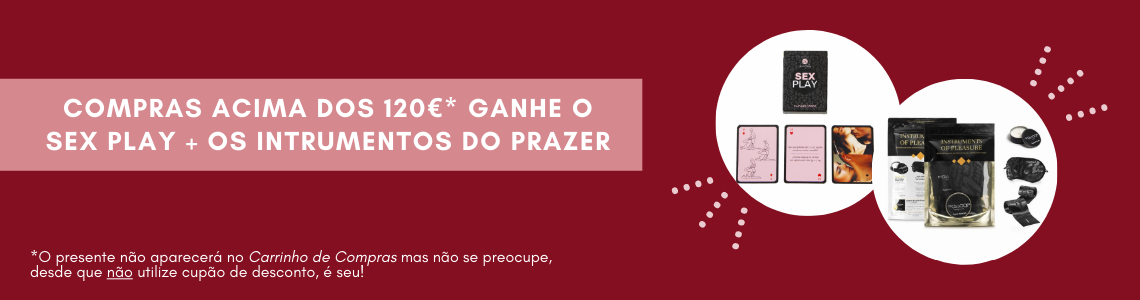 Nas compras acima dos 120€ - sem a utilização de cupão de desconto- você ganha o jogo SEX PLAY + o kit INSTRUMENTOS DO PRAZER!