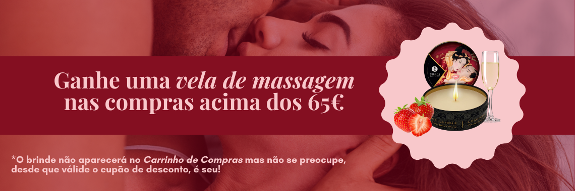 Nas compras acima dos 65€ você ganha uma VELA DE MASSAGEM de morango e champagne com o cupão: VELA