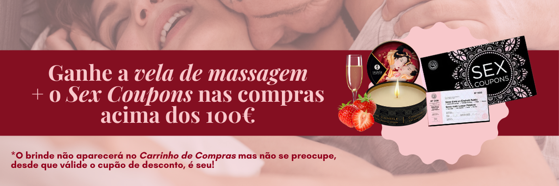 Nas compras acima dos 100€ você ganha a VELA DE MASSAGEM + o SEX COUPONS com o cupão: SÃOVALENTIM