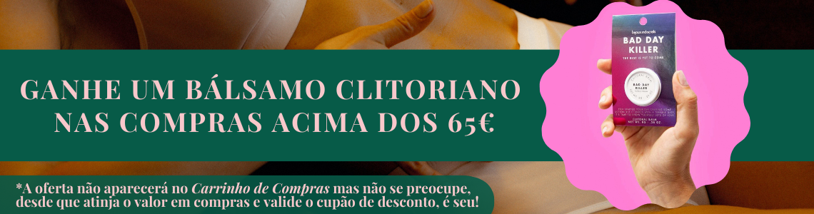 Nas compras acima dos 65€ você ganha um BÁLSAMO CLITORIANO com o cupão: BALSAMO (ESGOTADO)
