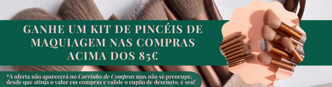 Nas compras acima dos 85€ você ganha um KIT COM 13 PINCÉIS DE MAQUIAGEM com o cupão: PINCEIS (ESGOTADO)