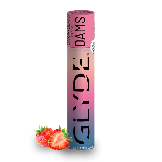 Barreira para sexo oral GLYDE Dams – Sabor morango (4 unidades)