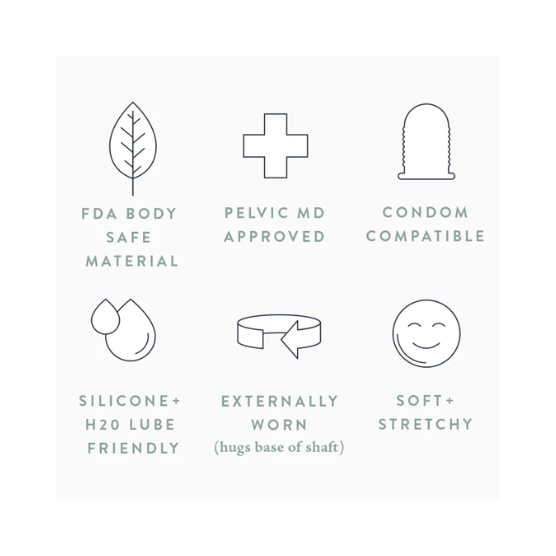 Nota sobre o material: O Ohnut original foi projetado em silicone, no entanto, recebemos alta demanda para uso com lubrificação de silicone, então ajustamos o Ohnut de acordo para que você possa usar lubrificação à base de silicone ou água.