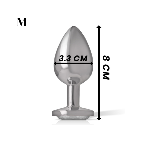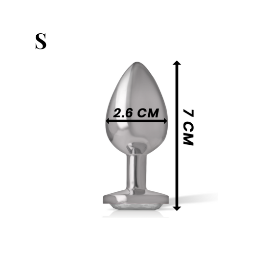 Este plug não deve ser completamente inserido no ânus; a parte com o brilhante funciona como uma trava de segurança e não deve ser forçada a entrar. Se for inserido totalmente, poderá perder o plug dentro do corpo, podendo ser necessária uma cirurgia para o retirar. Recomenda-se a aplicação de uma fina camada de lubrificante, apenas o suficiente para a inserção, sem exageros.