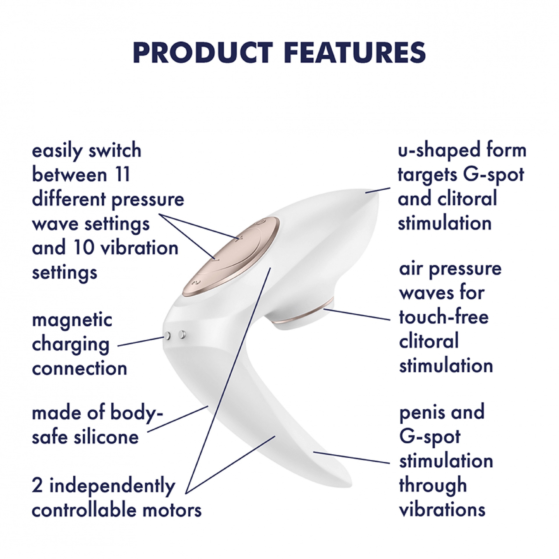 O Pro 4 Couples traz a revolucionária tecnologia de ondas de pressão ("sugador") para o ato de fazer amor a dois! Estimula o clitóris com as ondas de pressão, enquanto os dois parceiros se beneficiam das vibrações da haste inserível destinada a estimulação do ponto G e do pénis.
