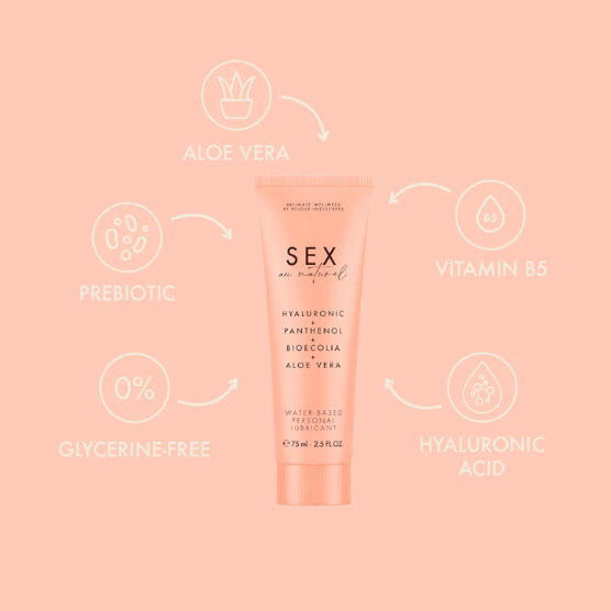 Sex Au Naturel é um lubrificante íntimo neutro de qualidade médica, à base de água, que promove a lubrificação natural e apoia um microbioma saudável, mantendo os tecidos hidratados e húmidos, melhorando a hidratação e a elasticidade da região íntima para o máximo conforto graças a sua formulação com ácido hialurónico, panthenol, ácido láctico, bioecolia e aloe vera.